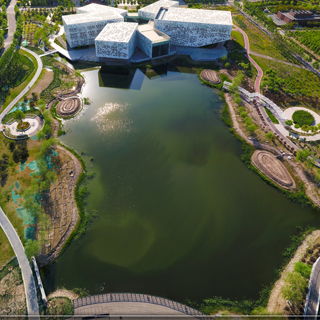 水墨端园乃校园的“智圆之印”。整个景园以波光潋滟的南开湖为中心,西侧坐落姿态翩跹的大通学生活动中心,该建筑由海棠花形象演绎而来。