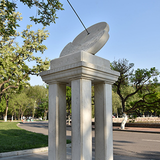 坐落在马蹄湖北侧原木斋图书馆旧址上的办公楼前,立有建校85周年校庆时中国人民解放军总后勤部捐赠的“日晷”。