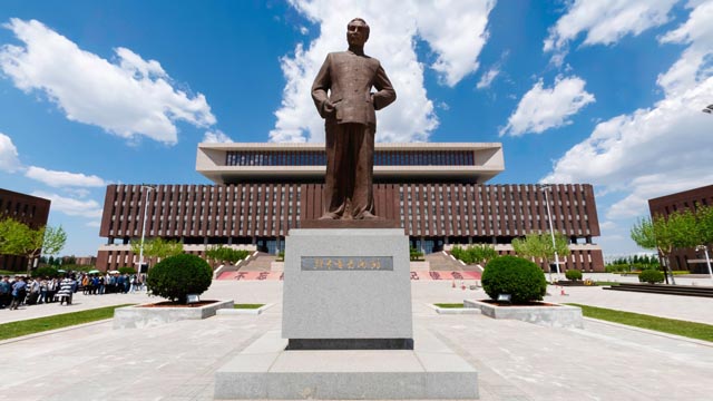 在南开大学敬业广场上,矗立着一座汉白玉雕像——一位学者左手握书,端然而坐,透过镜片的目光凝视着前方。他就是新中国成立后南开大学第一任校长杨石先。