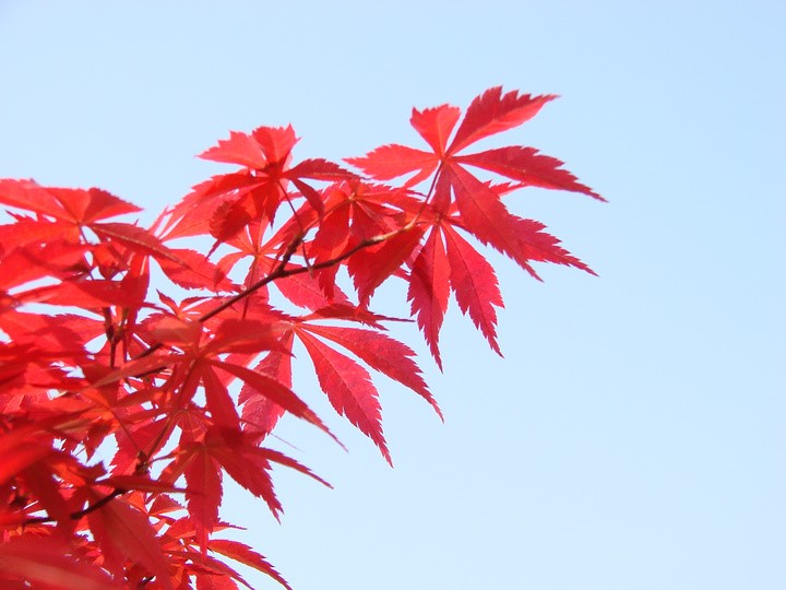 落叶乔木,树皮平滑,灰褐色。单叶对生,常掌状5-9裂,裂片卵状长椭圆形至披针形,先端锐尖,叶缘有重锯齿;叶常年红色或紫红色。花杂性,伞房花序顶生,紫色。果核球形,翅果,幼时紫红色,成熟时黄棕色。